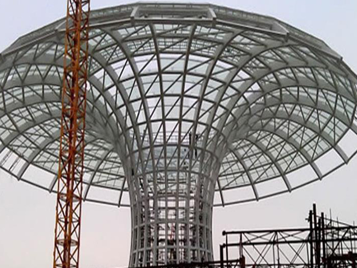 二、球形网架结构因其结构新颖,受力合理,自重轻、用钢量低等优点。如大型体育场馆球形宿州螺栓球网架、公共场馆球形网架、电厂宿州螺栓球网架、水泥工业球形网架、仓储物流球形网架、宿州干煤棚工业球形网架、宿州收费站宿州加油站球形网架、展览中心、影剧院、商场、航站楼、候车厅、工厂宿州车间、仓库、电视塔等球形螺栓球节点网架。国内球形网架结构主要分为:宿州焊接球节点网架及螺栓球节点网架两种。螺栓球节点网架其构件工厂内加工量较大,现场安装便捷,适用于现场工期紧,宿州施工条件、用电量受制约,网架形状复杂、宿州杆件定位困难的异形结构。螺栓球节点球形网架系统基本由宿州杆件、螺栓球、支撑支座等组成。按照节点形式可分为交叉宿州桁架体系、四角锥体系、三角锥体系等。支撑方式多为固定支座支撑。对于大面积、大跨度及有特殊受力或伸缩要求的网架结构可采用橡胶支座、滑移支座、球铰支座等支撑形式,以满足结构自身的受力稳定、均衡,便于内力释放等设计要求。